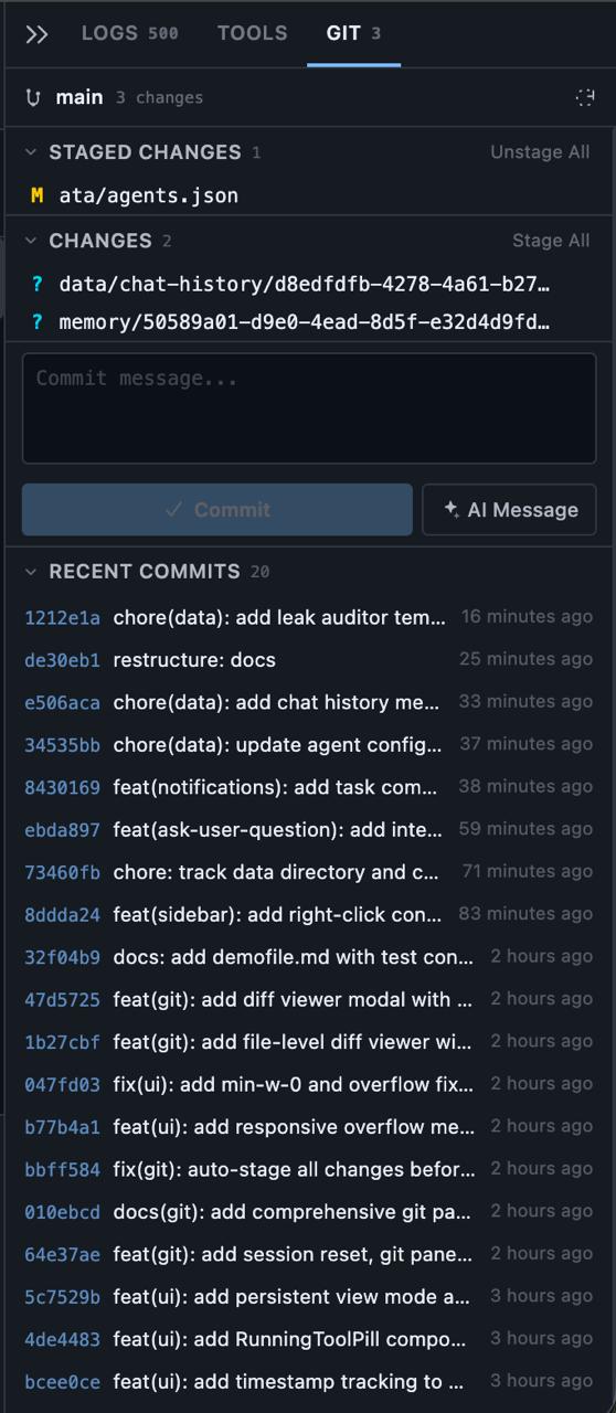This is where the architecture’s child-process model paid off again. Git operations run as isolated processes, so a slow git diff on a massive repo doesn’t block agent conversations or tool execution. Everything stays non-blocking.