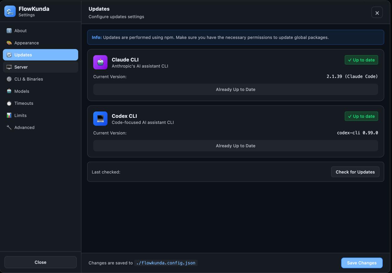 CLI-over-API continues to be the right bet. Every time Claude or Codex ships a new feature, FlowKunda gets it automatically. No SDK updates, no API migration, no waiting for wrapper libraries to catch up.